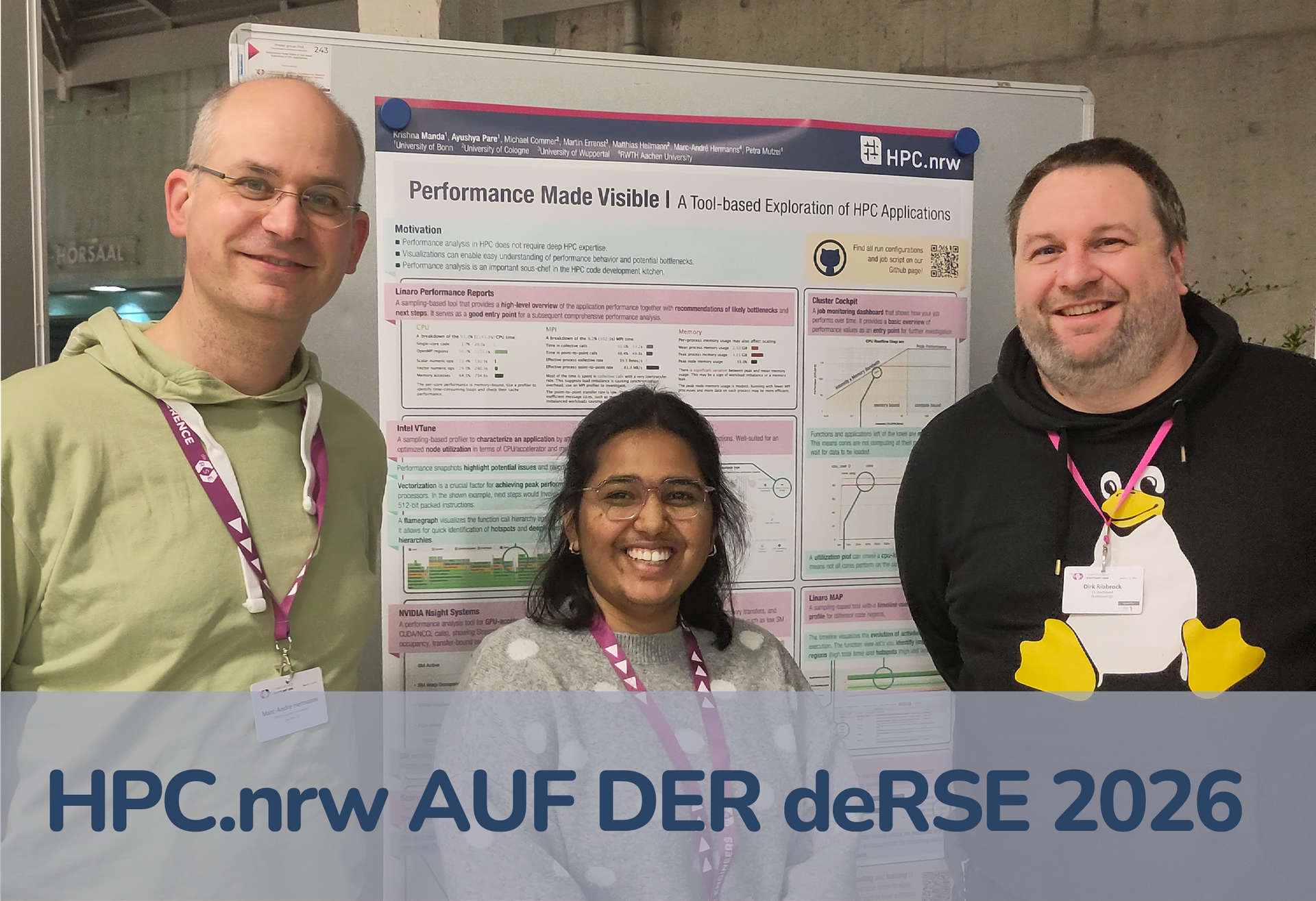 Im Rahmen der deRSE2026 in Stuttgart setzt HPC.nrw mit Beiträgen zu Performance-Analyse, skalierbaren KI-Workflows und reproduzierbaren Methoden sowie einem praxisnahen Workshop prägnante Impulse für eine leistungsfähige, nachhaltige und breit zugängliche Nutzung von HPC in der Forschung.