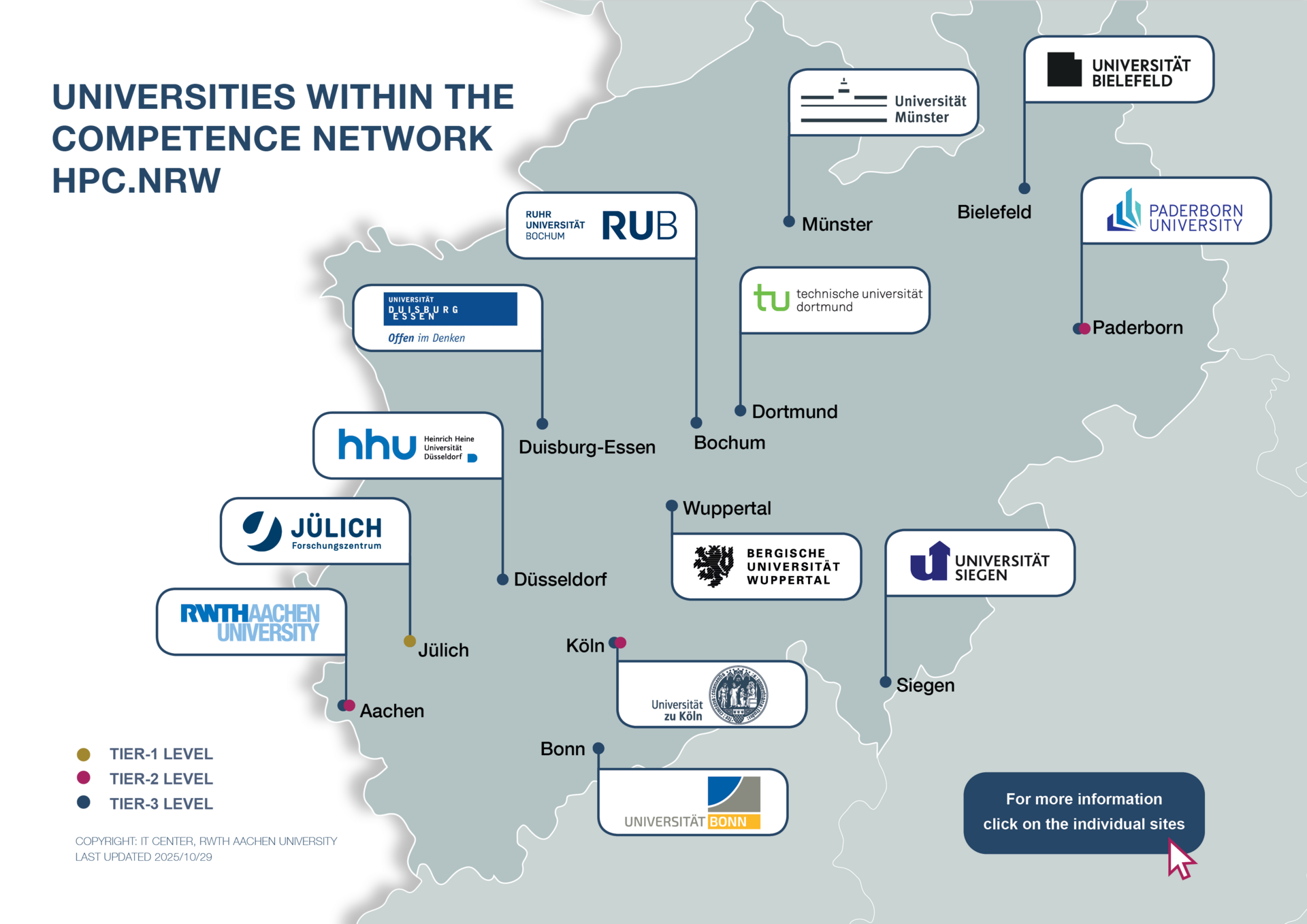 The North Rhine-Westphalian Competence Network for High Performance Computing (HPC.NRW) is a competent and thematically broad contact point for users of High Performance Computing (HPC) systems in NRW.