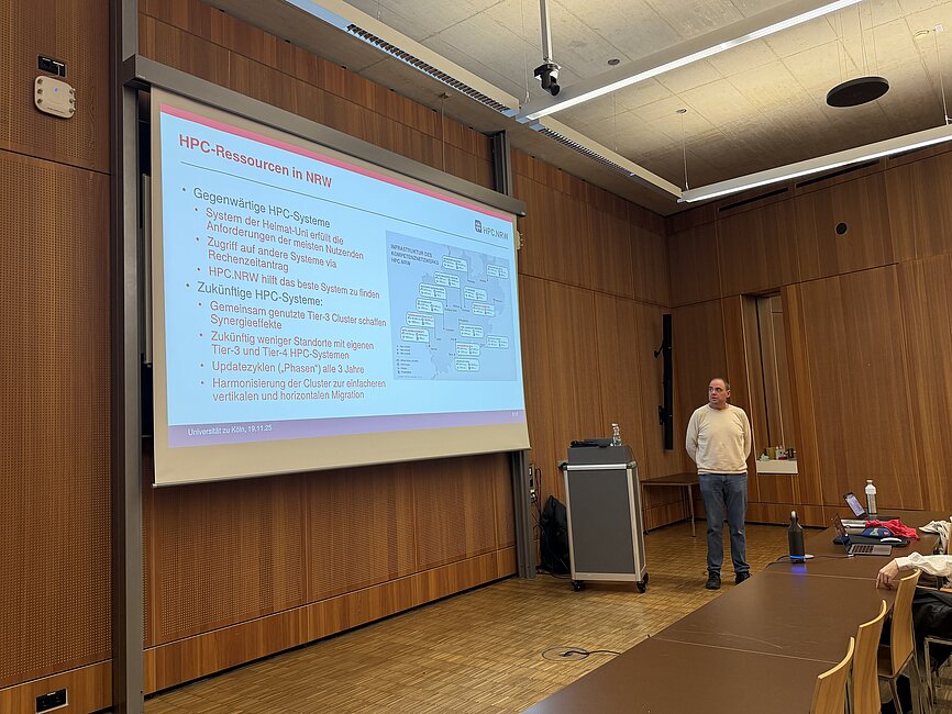 As part of the lecture series “IT PRIME – IT Projects in Research, Infrastructure and Modern Education”, HPC.NRW was invited to the University of Cologne to provide insights into the current developments of the statewide competence network for high-performance computing. The series regularly features key IT projects that significantly shape research, teaching, and infrastructure, and offers an open space for exchange, questions, and networking.